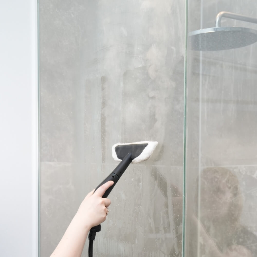 👉 With a steam cleaner, you can clean the entire bathroom in a more natural way – from tiles and fixtures to mirrors and shower doors.